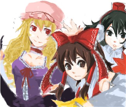 ▼絵:エチャより。わきみこと愉快な仲間達。(東方)
